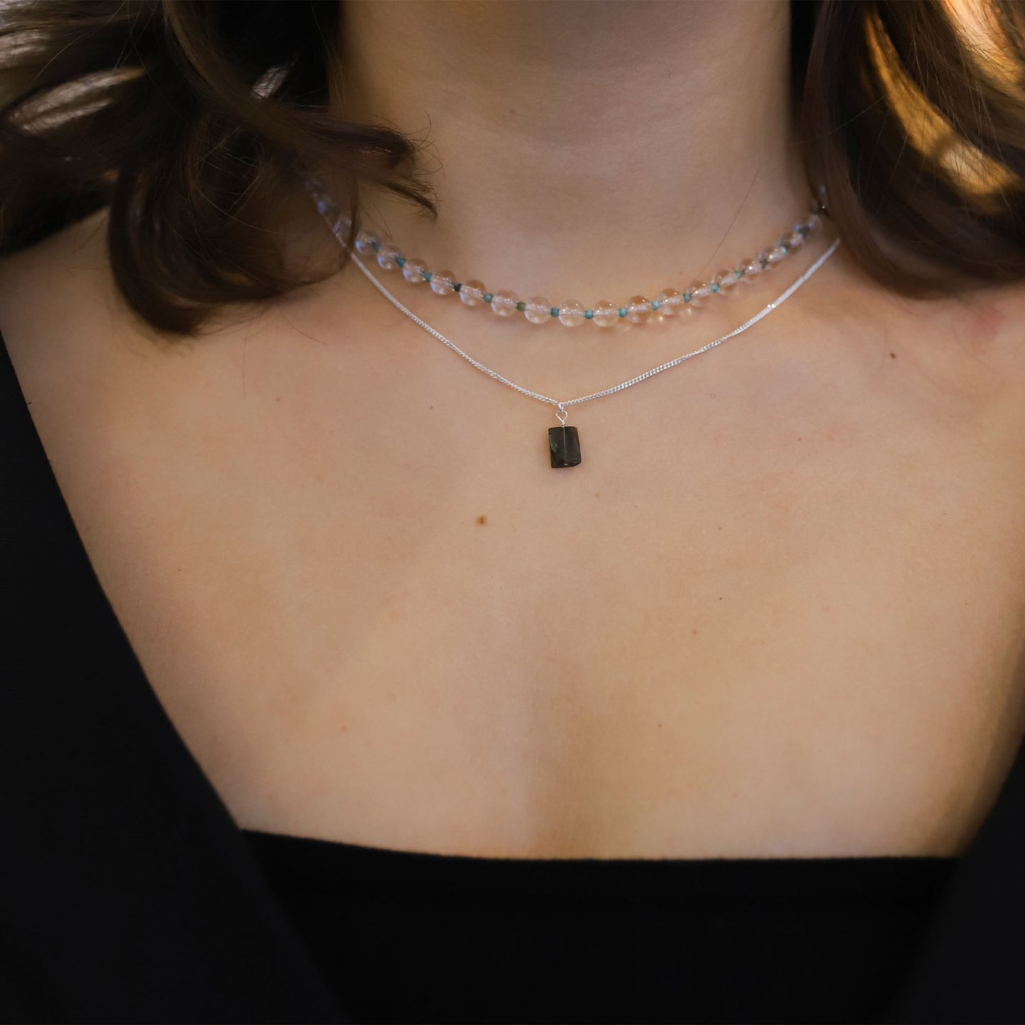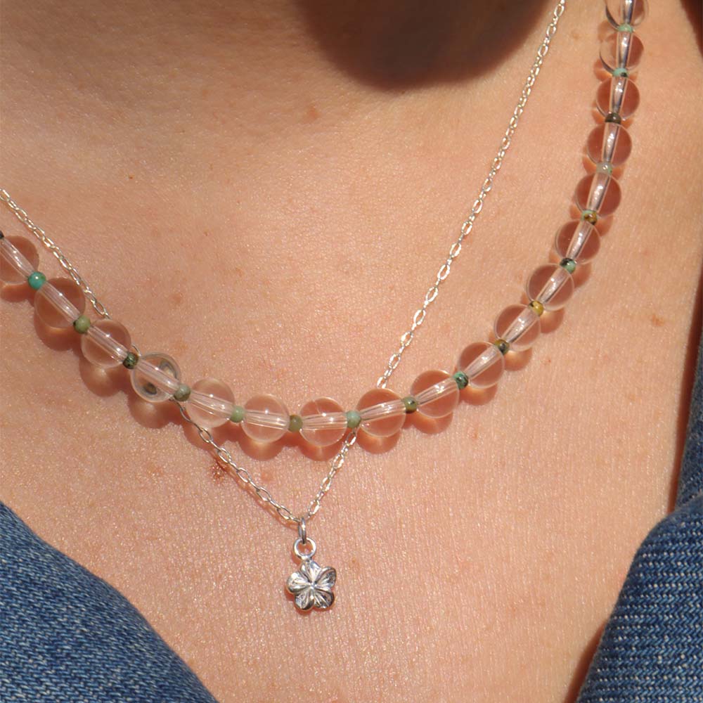 Iced matcha gemstone necklace silver