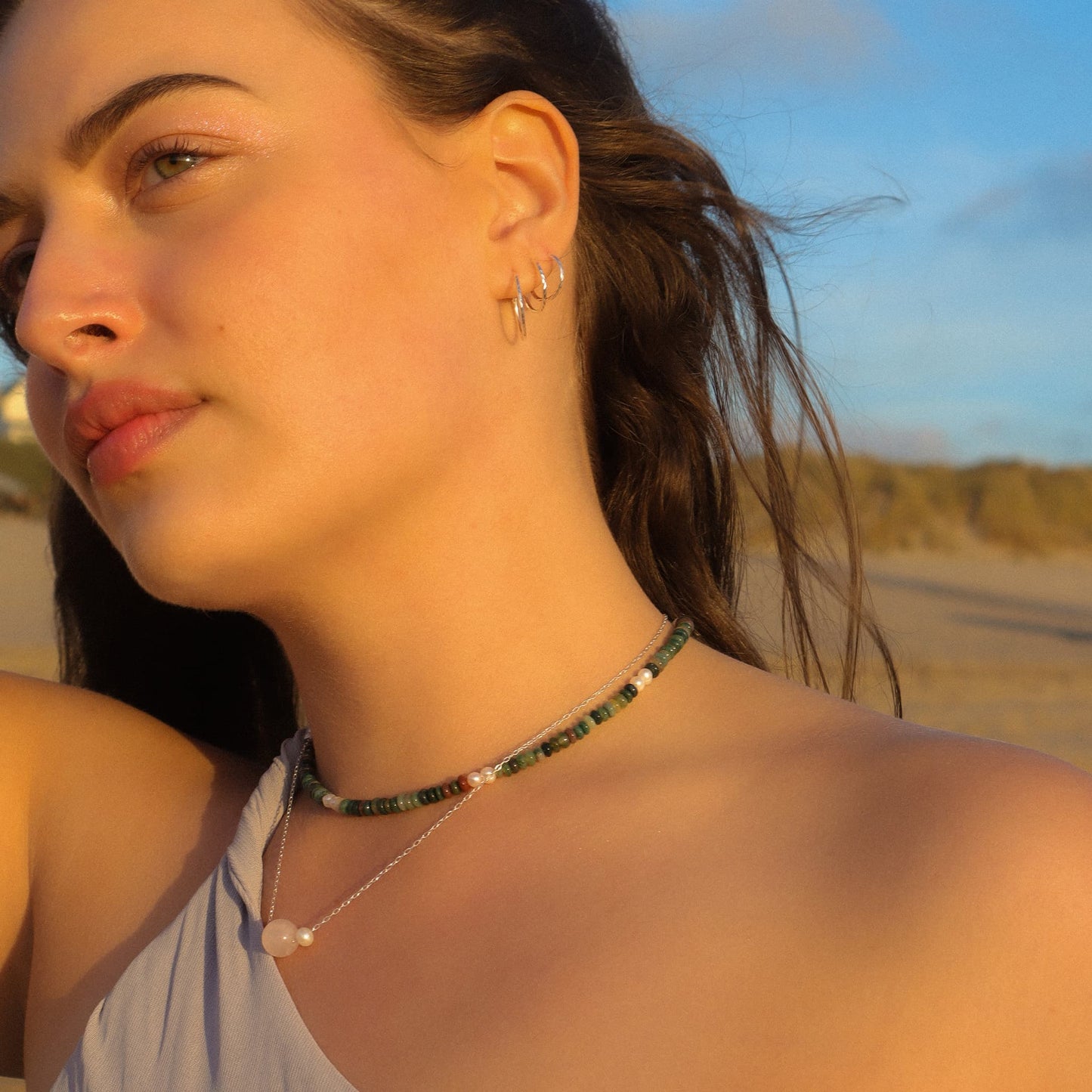 A single feeling rose quartz necklace silver