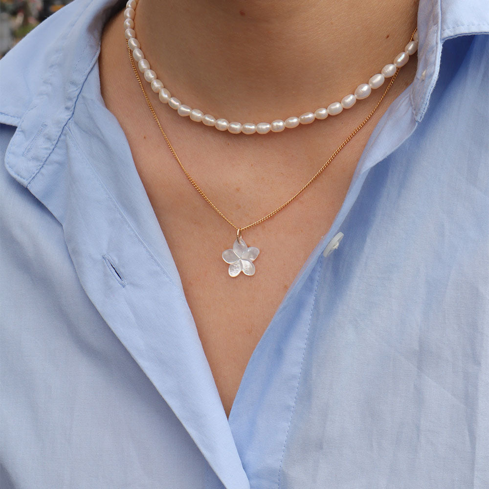 We exclusively use 14k gold filled, .925 sterling silver, and 5 micron vermeil gold. Perfect for everyday wear! All the gemstones & freshwater pearls we use are genuine. You can find detailed descriptions of all the materials we use and how to care for them here.