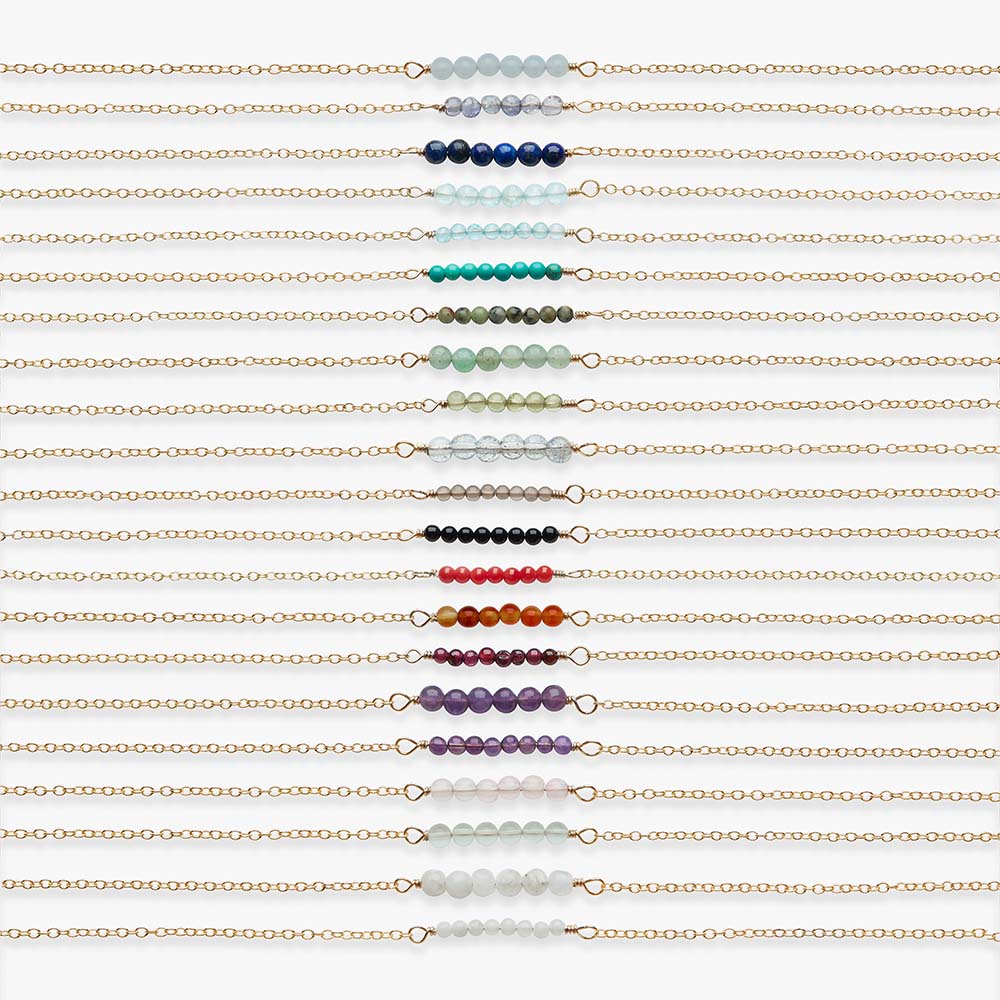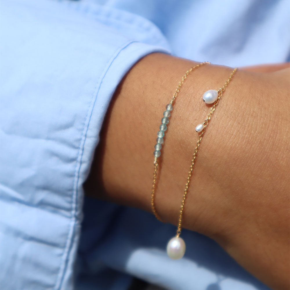We exclusively use 14k gold filled, .925 sterling silver, and 5 micron vermeil gold. Perfect for everyday wear! All the gemstones & freshwater pearls we use are genuine. You can find detailed descriptions of all the materials we use and how to care for them here.