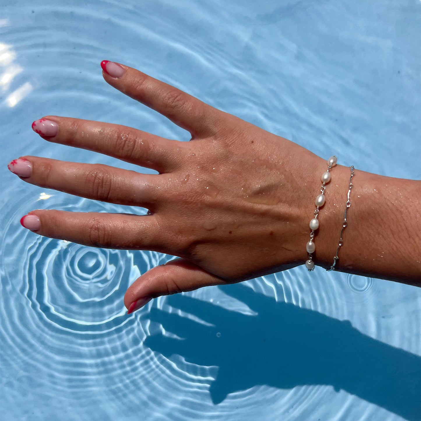 We exclusively use 14k gold filled, .925 sterling silver, and 5 micron vermeil gold. Perfect for everyday wear! All the gemstones & freshwater pearls we use are genuine. You can find detailed descriptions of all the materials we use and how to care for them here.