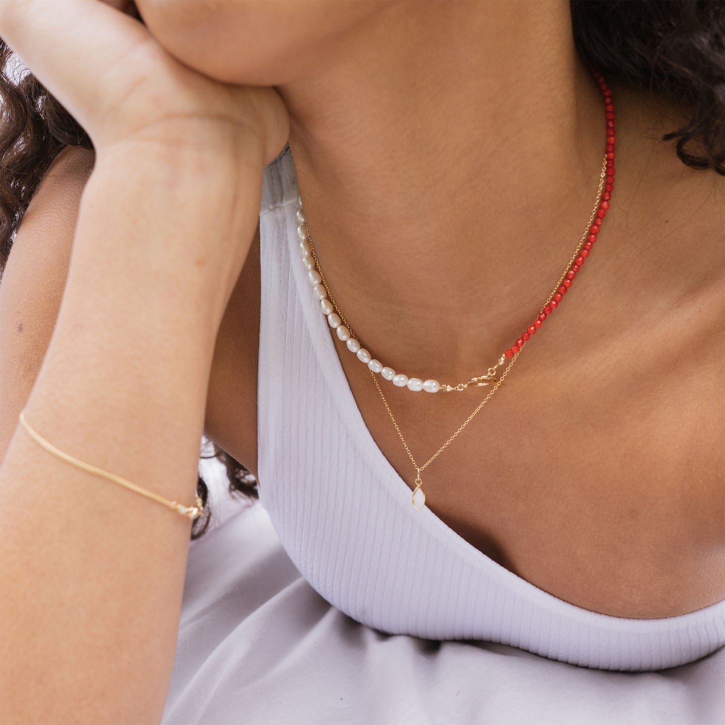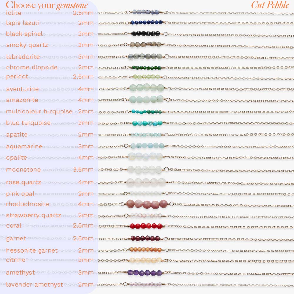 We exclusively use 14k gold filled, .925 sterling silver, and 5 micron vermeil gold. Perfect for everyday wear! All the gemstones & freshwater pearls we use are genuine. You can find detailed descriptions of all the materials we use and how to care for them here.