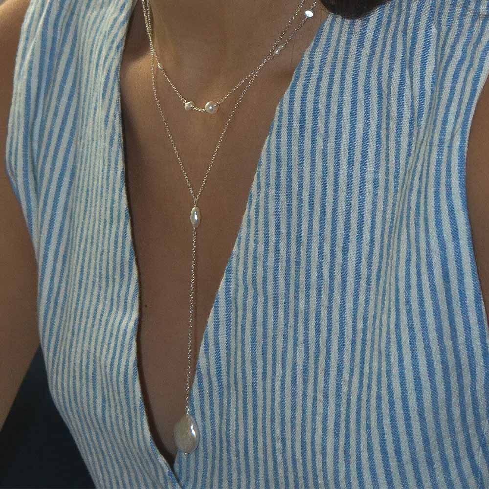 We exclusively use 14k gold filled, .925 sterling silver, and 5 micron vermeil gold. Perfect for everyday wear! All the gemstones & freshwater pearls we use are genuine. You can find detailed descriptions of all the materials we use and how to care for them here.