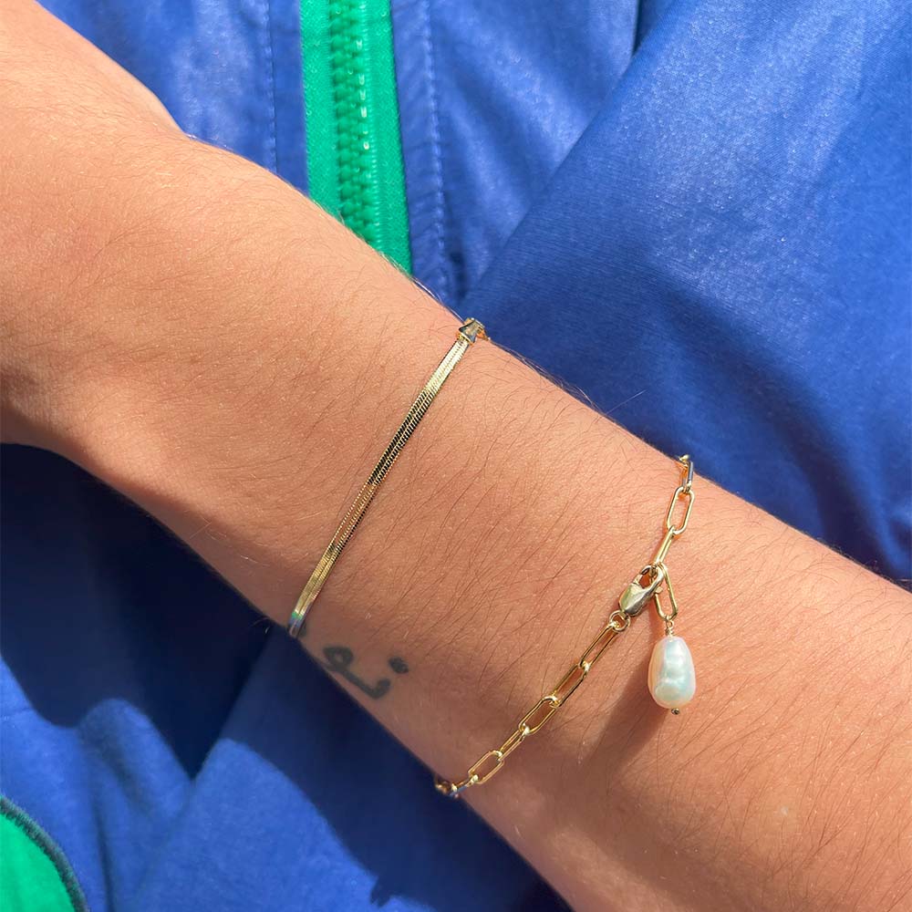 We exclusively use 14k gold filled, .925 sterling silver, and 5 micron vermeil gold. Perfect for everyday wear! All the gemstones & freshwater pearls we use are genuine. You can find detailed descriptions of all the materials we use and how to care for them here.