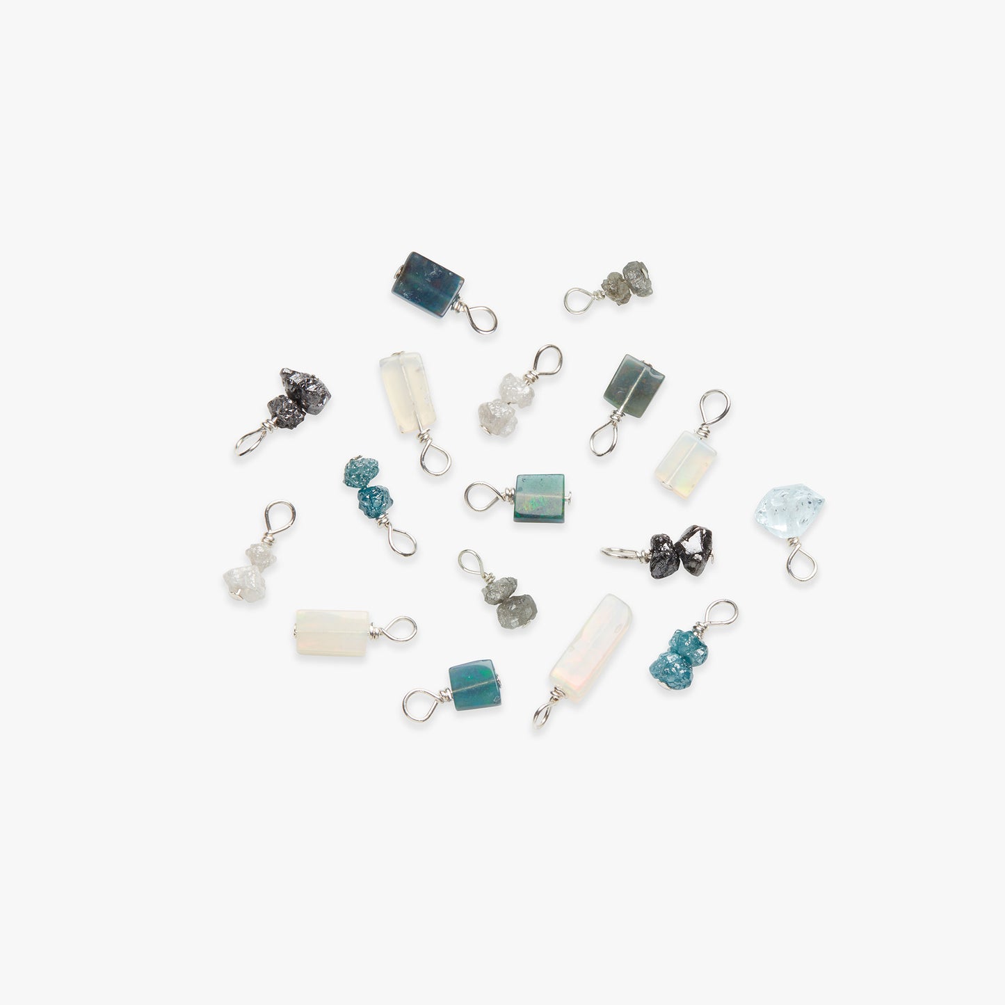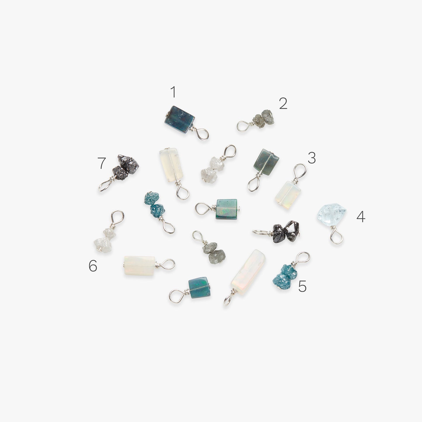 Add-on Diamond in the rough, opal, Herkimer charm silver
