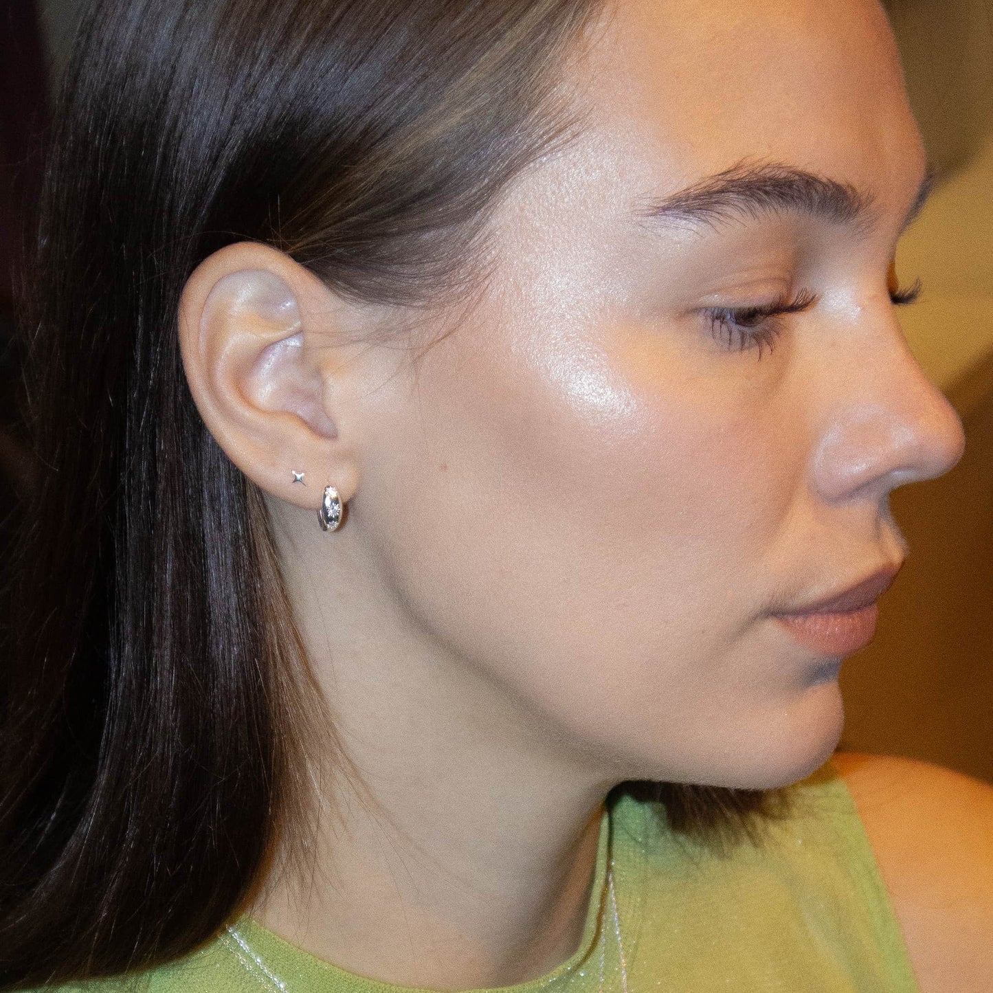 Forget flimsy costume jewelry. These are handcrafted in our Amsterdam atelier from solid, recycled sterling silver. They feature a soft, puffed four-point star shape that reflects the light like a little piece of moonlight. Cool, bright, and versatile enough to wear with your favorite hoodie or your NYE dress.